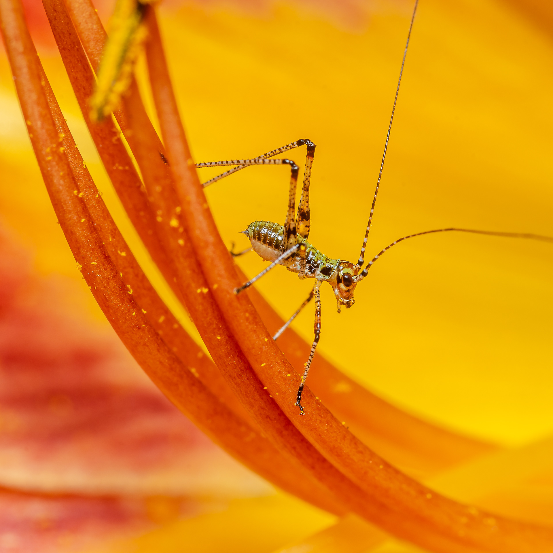 Wie kommt man auf die Idee, ausgerechnet Insekten zu fotografieren? Von Biologie war ich schon als Schüler fasziniert, spätestens als Ulrich Weber unser Fachlehrer wurde. Dabei bin ich ihm ewig dankbar, dass er mir vom Biologie-studium abriet; die Faszination hat sich erhalten. Dazu kamen fantastische Nahaufnahmen in "Kosmos - unsere Welt heute", die Natur aus einer völlig ungewohnten Perspektive zeigten. Und dann behauptet der Caveman ja, dass in allen Männern ein Jäger stecke. Die Fotojagd auf Insekten hat viel mit der blutigeren Variante gemeinsam: die Suche nach viel versprechenden Jagdgründen, das Ansitzen oder Anschleichen an die Beute (Insekten haben gute Augen), das schwierige Zielen, die Notwendigkeit, die "Waffe" zu beherrschen, das Hochgefühl, wenn der "Schuss" gesessen hat ... Nur darf das fotografisch erlegte Tier dann davonfliegen.